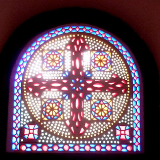 Right : Another stained glass window showing the papyrus plant inside the Hanging Church, Cairo