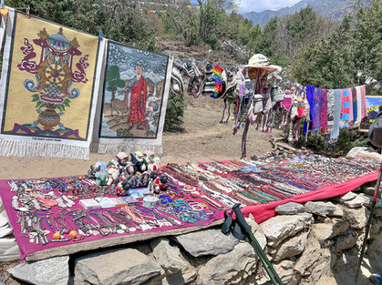 From Lukla, we eased into a relatively moderate hike, mostly downhill, to Phakding, following the Dudh Koshi River, whose rushing waters provided a serene backdrop. The trail, was what we soon learnt, was "Nepali flat" - a little up, a little down - basically a series of rolling hills. We passed by many vendors along the way selling hiking essentials and souvenirs.