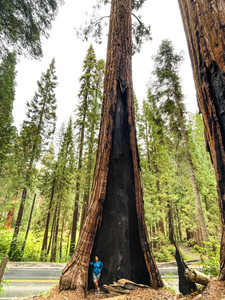 Close to the General Sherman tree, near the shuttle stop is yet another tunnel log. But this is for humans to pass through.